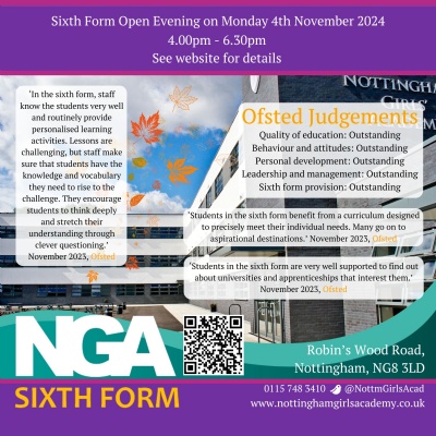 Sixth Form Open Evening - Monday 4th November - 4:00pm - 6:30pm