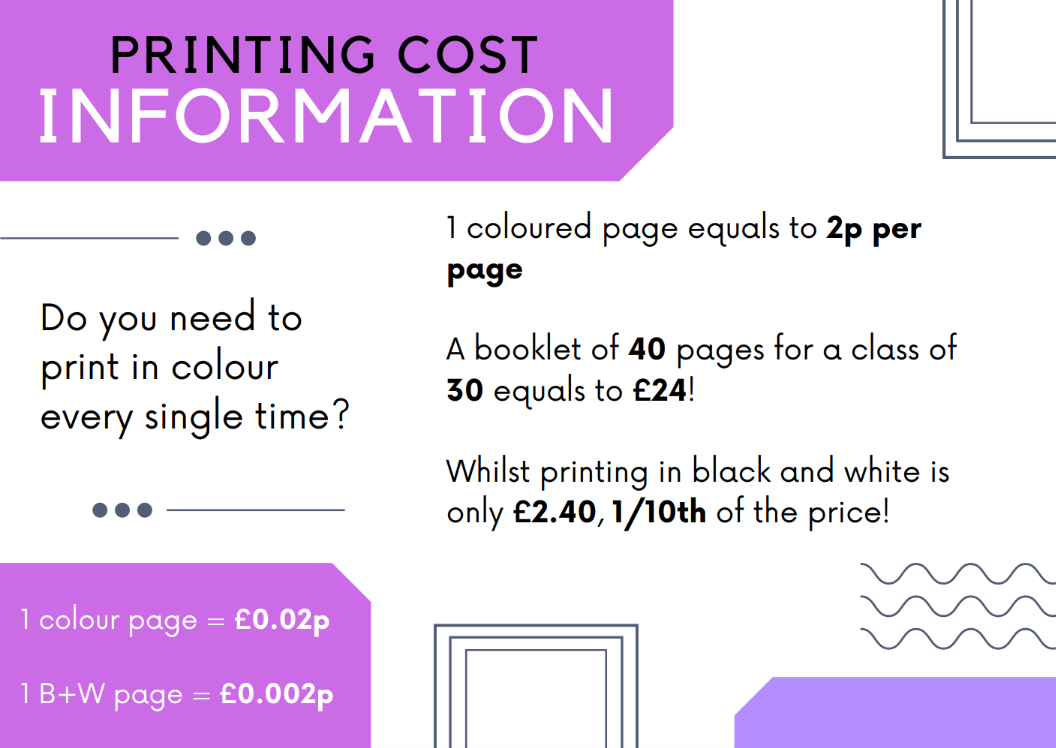 • Colour Preference: Specify if you need the prints in black and white or colour. Please note that, by default, all prints will be in black and white unless otherwise specified. We encourage printing in black and white whenever possible.